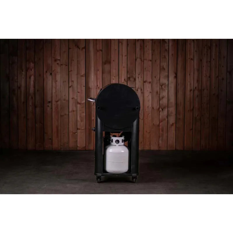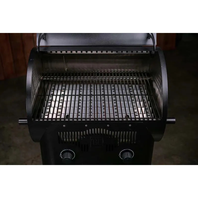 Crafted with a sleek and robust all-stainless steel construction, the Black Earth Retro Grill showcases a striking black paint finish that exudes timeless elegance. Its modern twist on a traditional barrel smoker design captivates the eye, making it a standout addition to any backyard or patio.