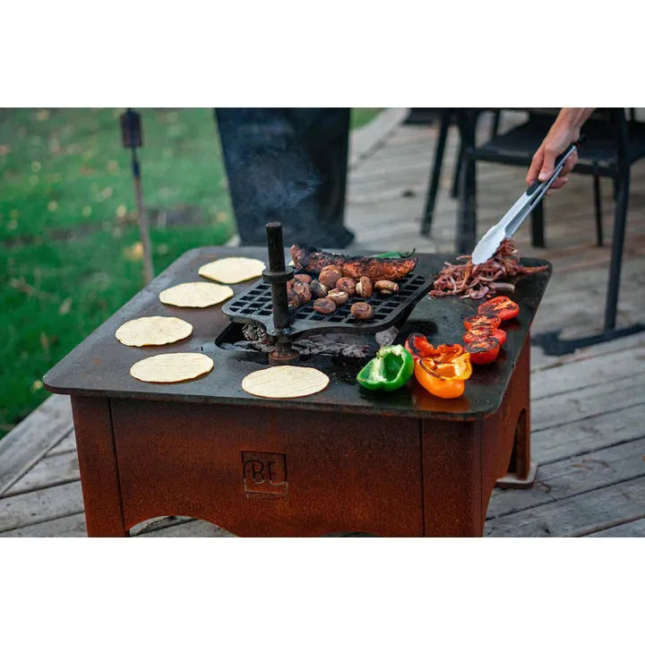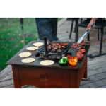 The Black Earth Teppan features a beautiful, rustic COR-TEN weathering steel for the base that we pre-patina at the factory combined with a 1/2″ (13 mm) thick carbon steel cook surface. The two position swing-in direct sear cook surface adds an additional level of versatility to the Teppan.