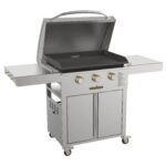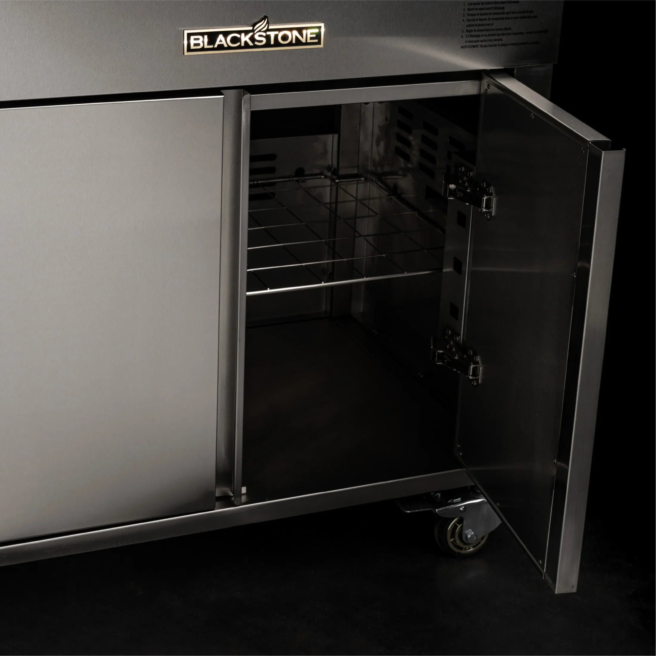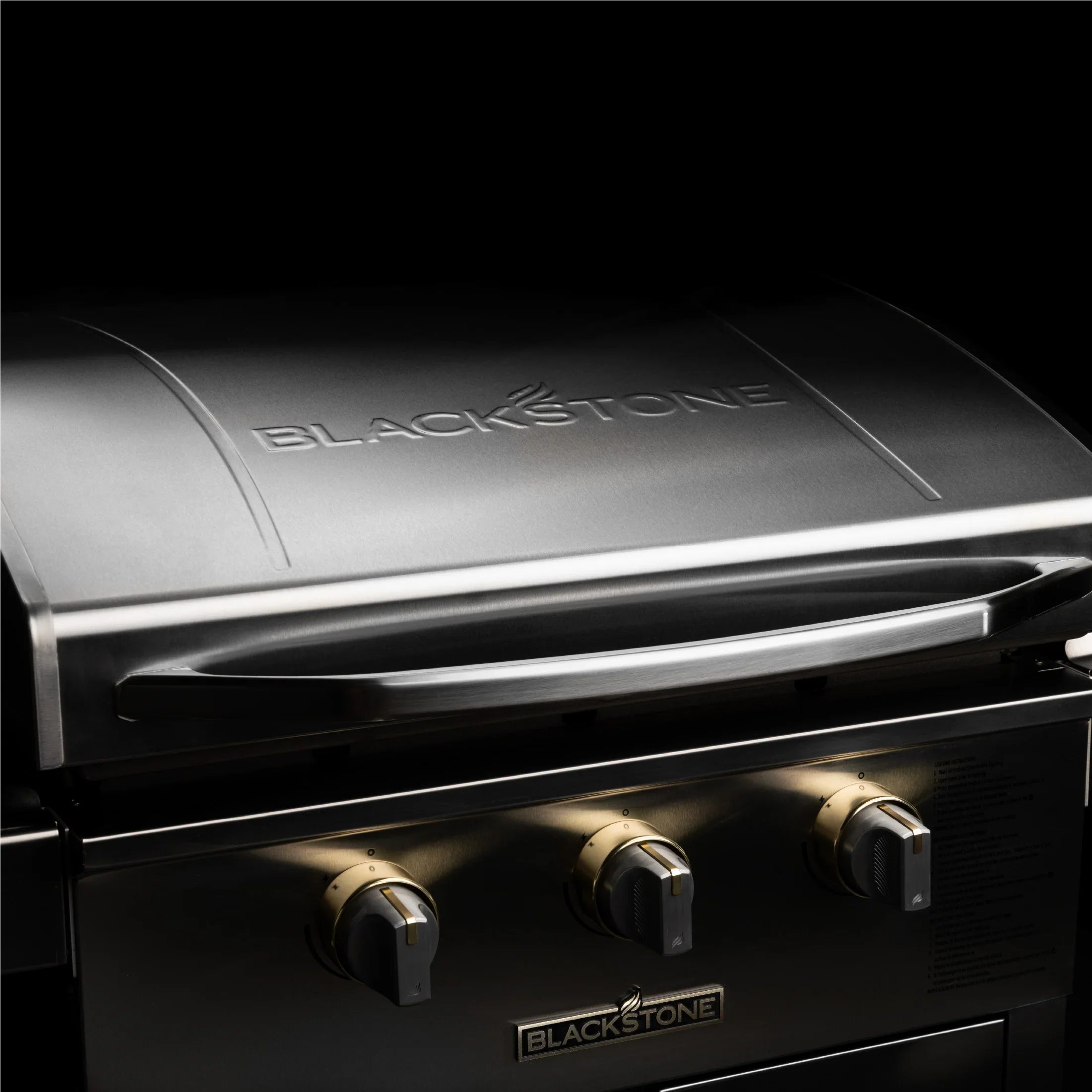 Transform your outdoor cooking with the Blackstone Select 28” Griddle featuring a sleek fusion of accuracy, sophistication, and ease. Crafted from durable 304-gauge stainless steel, this 28” griddle boasts a design that expands the versatility of your outdoor kitchen. Its integrated propane storage cabinet offers ample room for all your griddling essentials and seasonings. Experience enhanced accuracy with the innovative Omnivore Griddle Plate Technology and 3 independently controlled burners, allowing you to create a variety of dishes simultaneously. From morning pancakes to evening barbecues, this dynamic and efficient griddle is a backyard champion.