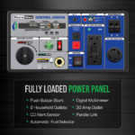 - Digital Control Center – The Digital Control Center features an LCD display showing hours run, voltage output, and load level.