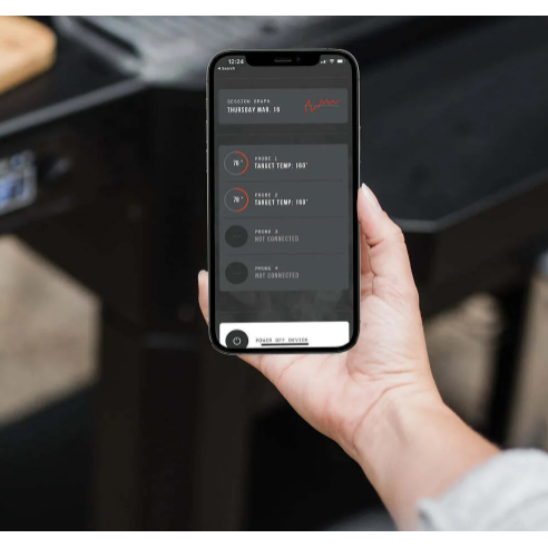 • Connect to the Masterbuilt App to set and monitor temperature, view session graphing, check meat probes and discover new recipes