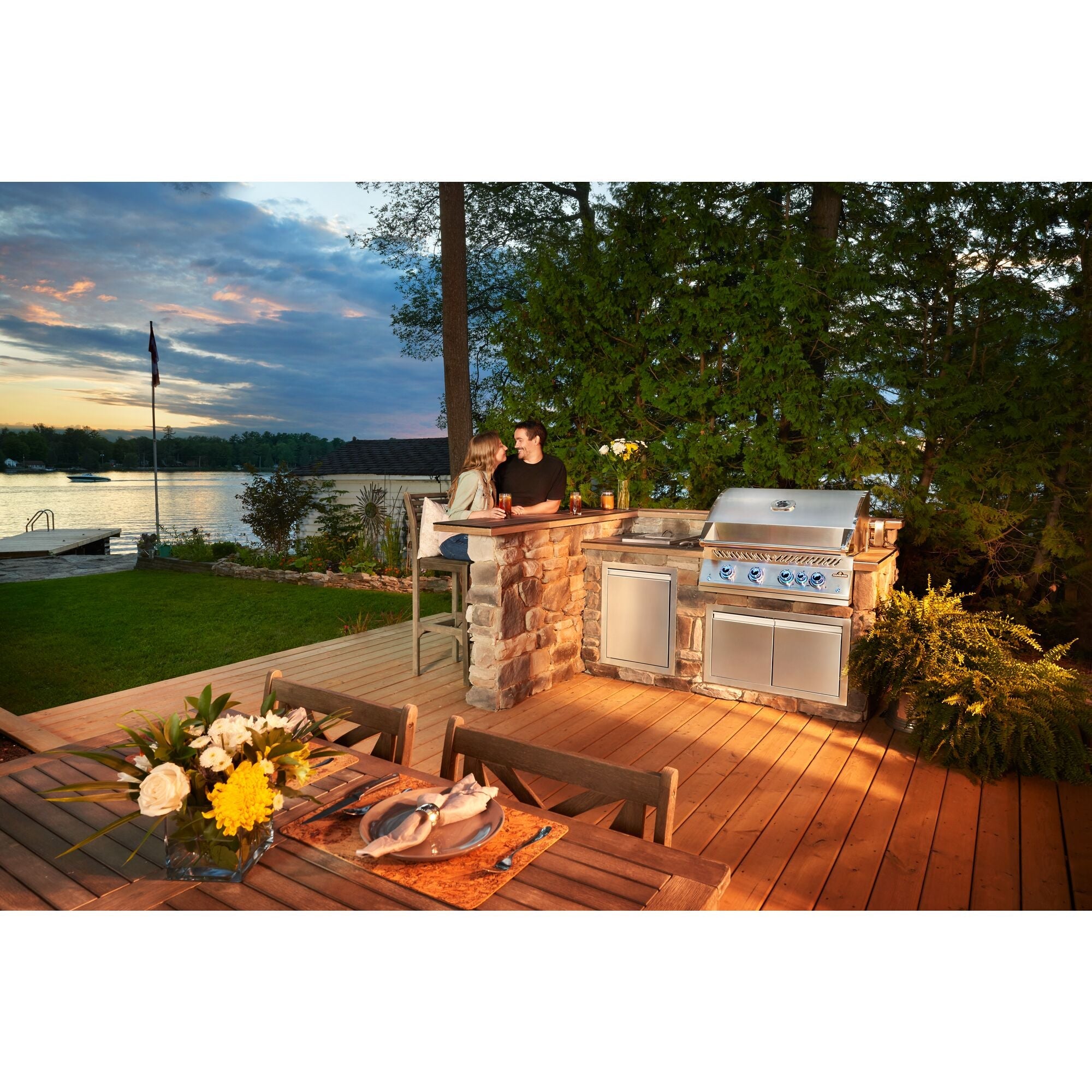 • The BIG32 32-inch Built-In Gas Barbecue Grill features an infrared rear burner and comes with a commercial grade rotisserie kit for perfect spit roasted meals