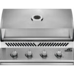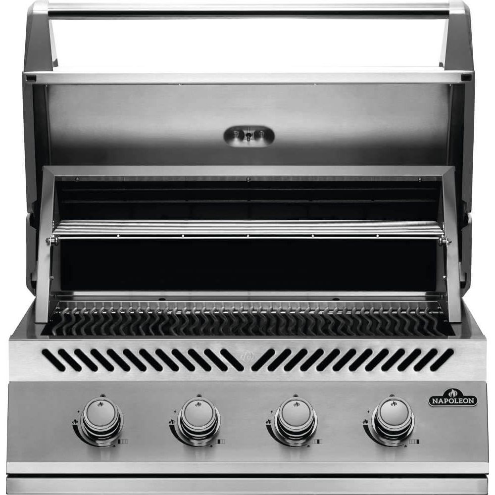 The Built-In 500 Series 32-inch Gas Grill is easy to build seamlessly into your ideal outdoor kitchen. Thick cooking grids, 9.5 mm of stainless steel, are virtually maintenance-free, providing the iconic WAVEâ„¢ sear marks that Napoleon is famous for. Precise temperature control and the ACCU-PROBEâ„¢ temperature gauge ensure that you’re searing, smoking, roasting, rotisserizing and baking with ease. Instantly light the burners with the failsafe JETFIREâ„¢ ignition system lights burners quickly with a jet of flame. Four burners provide the perfect amount of heat for any meal you want to create.Â