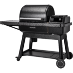 - Includes large powder-coated side shelf for prepping, resting meat, & more