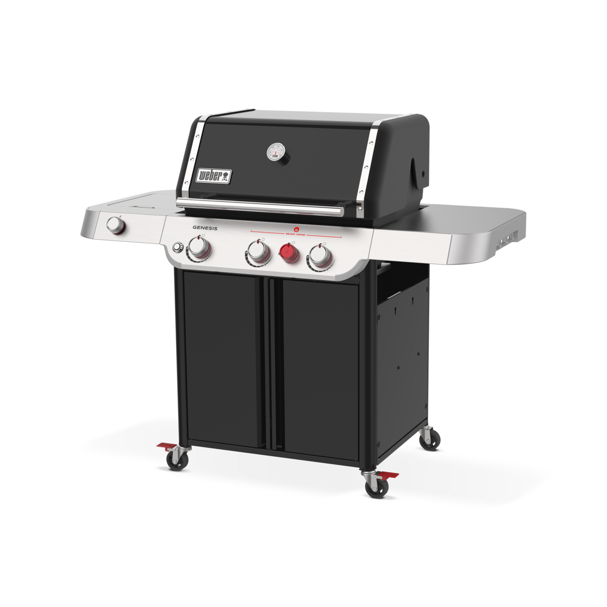 The 3-burner, porcelain-enamel Genesis E-335C, with extra-large sear zone and side burner, delivers legendary Weber quality, performance and durability in a grill you can rely on to make outdoor cooking for family and friends easy and enjoyable. The PureBlu burner system sets this grill apart from the pack – featuring unique, tapered burner tubes that generate consistent pressure and flames and deliver even heat across the grilling surface. Flames are directed above the raised gas ports, while food debris falls below, minimizing clogging and ensuring the grill lights every time.