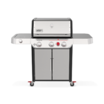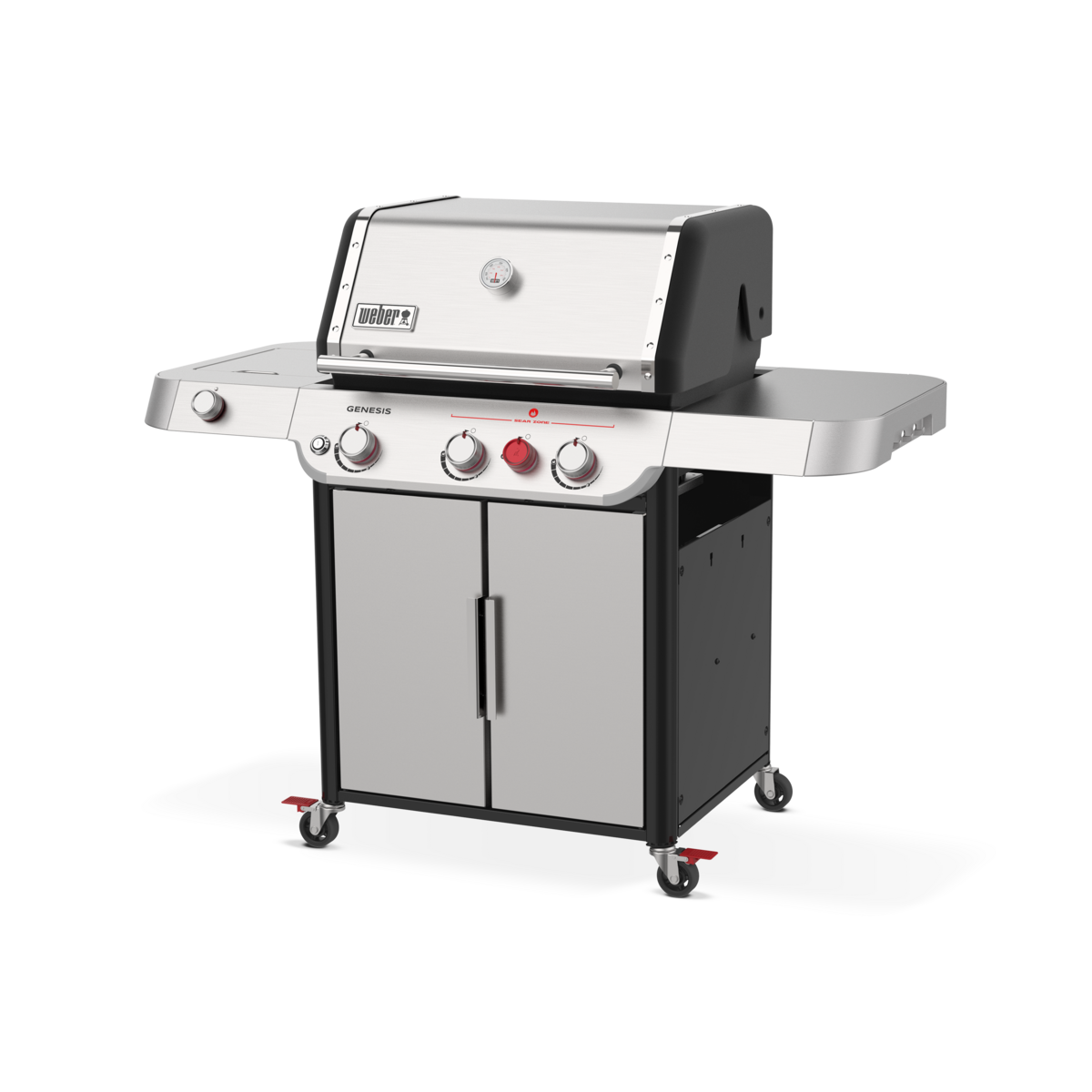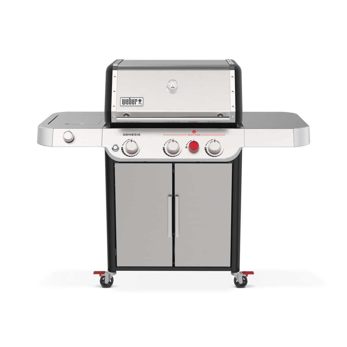 The 3-burner, stainless-steel Genesis S-335C, with extra-large sear zone and side burner, delivers legendary Weber quality, performance and durability in a grill you can rely on to make outdoor cooking for family and friends easy and enjoyable. The PureBlu burner system sets this grill apart from the pack – featuring unique, tapered burner tubes that generate consistent pressure and flames and deliver even heat across the grilling surface. Flames are directed above the raised gas ports, while food debris falls below, minimizing clogging and ensuring the grill lights every time. A beautiful stainless steel exterior and stainless cooking grates make this a grill you will enjoy for years to come.